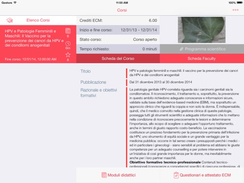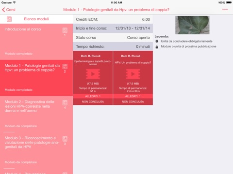 L’applicazione permette, una volta inserite le credenziali personali, di fruire del corso da iPad e da iPhone.