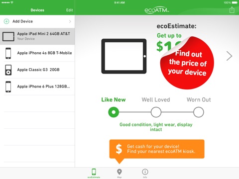 • ecoATM has over 4,200 kiosks nationwide and the app has a built-in locator to find the one nearest to you to drop off your device.