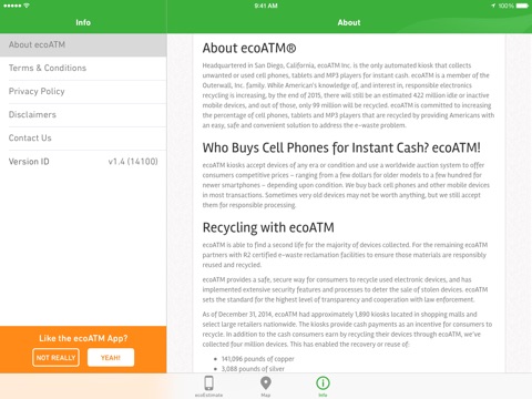 By using this application, you agree to ecoATM’s Terms and Conditions (http://ecoatm.com/terms-and-conditions/) and Privacy Policy (https://ecoatm.com/privacy-policy/).