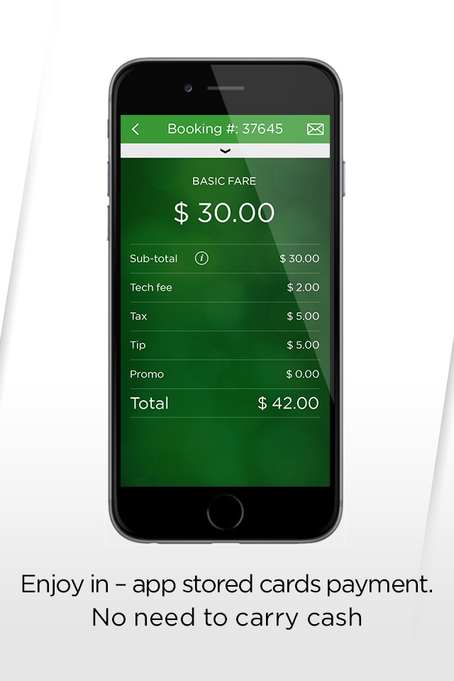 • Live action real-time map allows riders to track their booking from dispatch location to final destination.