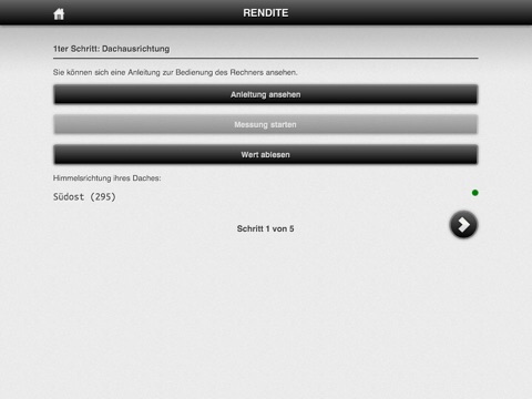 - Renditerechner mit der Möglichkeit zur Bestimmung von Ausrichtung und Neigung einer Dachfläche