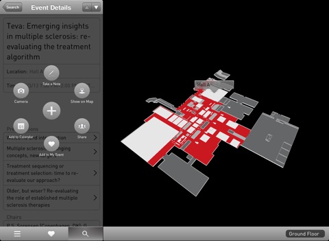 Using your iPhone, iPod Touch or iPad, you can explore the exhibition and event program using a highly intuitive 3D navigation system. The app’s interactive map allows you to navigate the halls, access exhibitor information and organize them as your personal favorites. Plus, you can access the full programs for ECTRIMS.