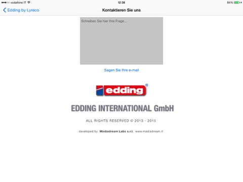 Edding by Lyreco lapplicazione che permette di sfogliare il catalogo dei prodotti Edding distribuiti da Lyreco. In lingua italiana. Inoltre potrai contattare direttamente tramite mail il responsabile Italia della Edding per tutte le informazioni.