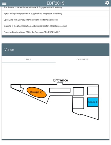 display the map of the venue and find a car park nearby