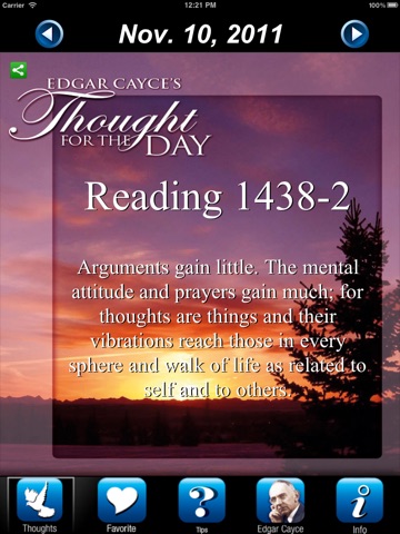 The spiritual nature of the Edgar Cayce readings promote a oneness of all life and inclusive philosophy that people have found inspiring for more than half a century. The very best “golden nuggets” among these quotes from his readings have been included here in our “Thought for the Day” app.