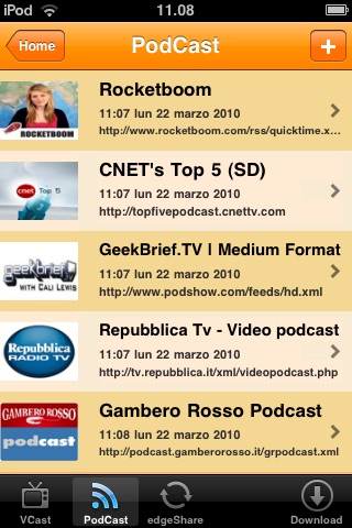3) Download, import/export and share Videos: edgeTVPro integrate Video Podcast functionalities and it enables you to import and export video on your iPod/iPhone device, keep it, watch it for as long as you want and share with your friends.
