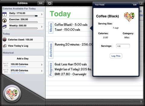 Edibles is the most reliable and intuitive calorie journal available for iPad. It comes with everything you need to achieve a healthy lifestyle.