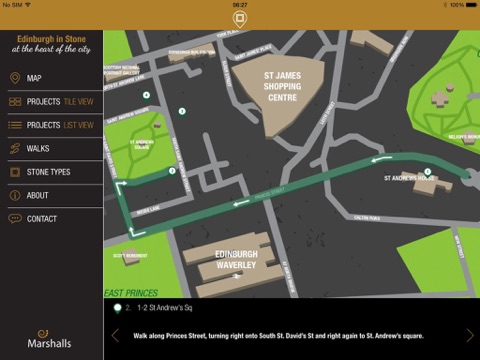 Marshalls, mapped areas of the Edinburgh city are intended as an exchange of ideas, a guide to the cities architectural stone heritage, illustrating Marshalls British Stone Portfolio through a collection of buildings; historic to contemporary new builds and dynamic landscaped areas which demonstrate the sustainability and longevity of the indigenousness stones they are built with.
