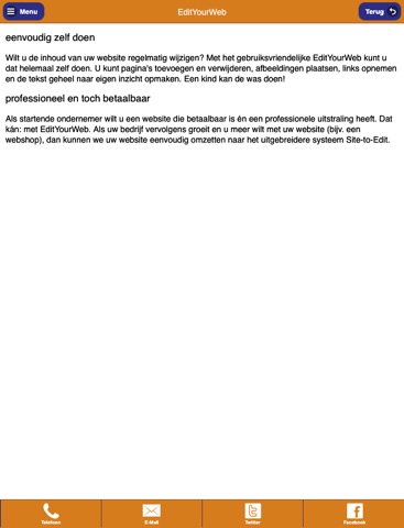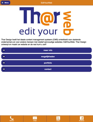 Thar Design heeft het ideale content management systeem (CMS) ontwikkeld voor startende ondernemers en voor andere mensen met relatief eenvoudige websites: EditYourWeb. Thar Design ontwerpt en maakt uw website en de rest kunt u zelf!