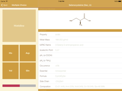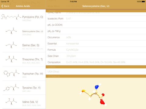 eduCa Amino is a learning software and a reference not only for nutritional therapists in training, but also for students of biology, biochemistry and medicine. The most important amino acids in one convenient listing: Structural formula, dynamic 3D model structures, chemical and physical properties at a glance for targeted memorisation. Codons can be found in an interactive table in which one can select between alternate characteristics like polar, hydrophobic and charged amino acids. To test the learning success, eduCa Amino offers also a quiz with four different modes and stats.