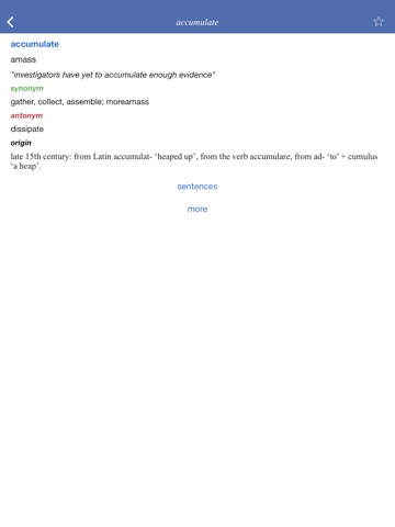 - Each word comes with its synonym, antonym and origin so that you can easily remember its meaning and expand your vocabulary
