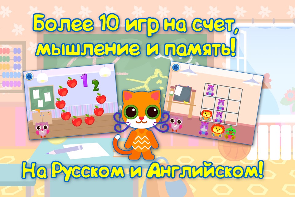 More than 10 mini-games will teach your child counting, telling time, comparing item numbers, will help his attention, thinking, memory and artistic development.