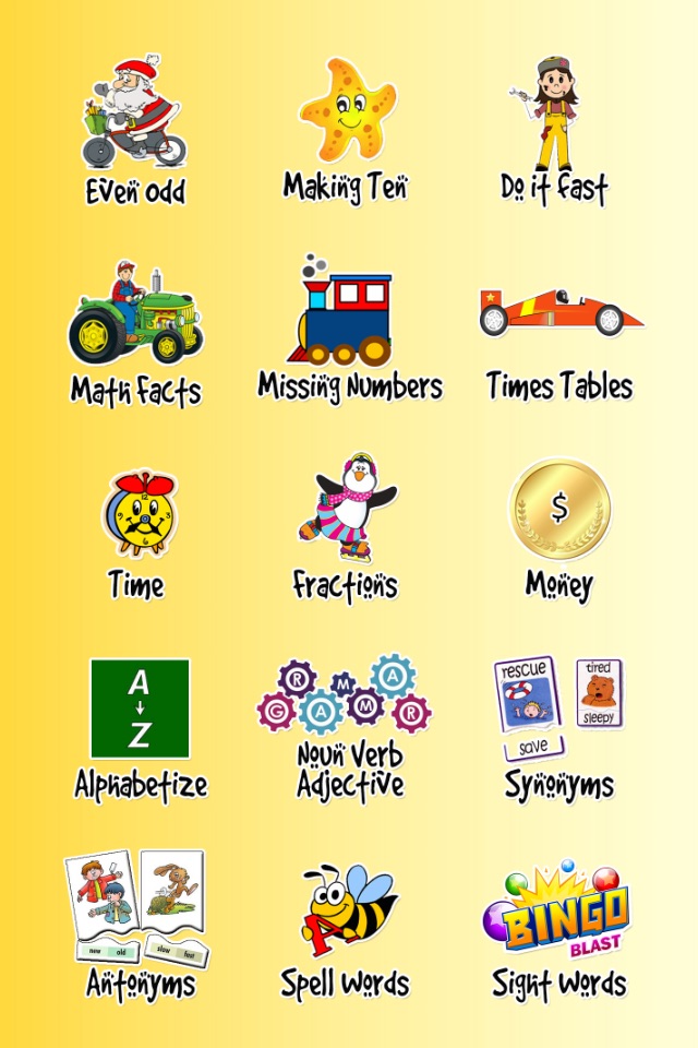 Nouns, verbs and adjectives game will help the child differentiate the three. Extensive spelling list with clear narration to boost spelling skills. This app will help in learning and reviewing the concepts learnt at this stage. Kids will start loving Maths and learn to approach the subject in a different way.
