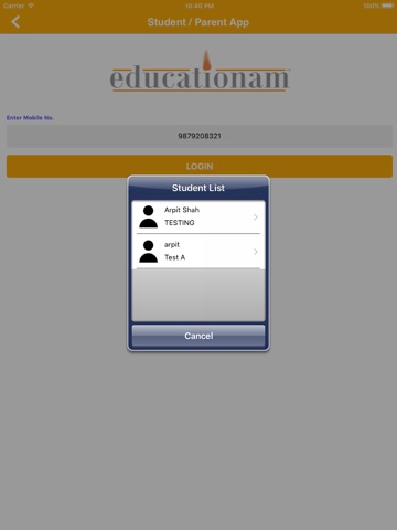 The Parent has to login with his Mobile Number into the App and select the institute after this he can view each & every information mentioned above.