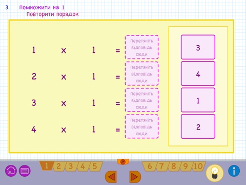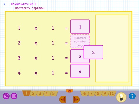 EduMe Таблиці Множення розроблено сумісно з дітьми для вивчення перших 10 таблиць множення. Відмінною рисою цього додатка є те, що діти можуть практикувати вправи, які відрізняються від стандартних освітніх ігор. Структура зроблена максимально простим способом і виглядає як справжній буклет зі сторінками. Кожна зі сторінок має вправу.