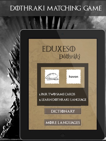Eduxeso is MUST HAVE DOTHRAKI language learning matching game for all fans of Dothraki, Khal Drogo and Game of Thrones!
