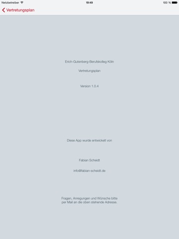 Diese App ermöglicht dir den Zugang zum Vertretungsplan des Erich-Gutenberg-Berufskolleg Köln. Von nun an musst du nicht mehr zum Plan laufen, sondern kannst ihn dir ganz bequem von deinem iPhone, iPod oder iPad ansehen. Der Plan ist nur einen Fingertip entfernt.