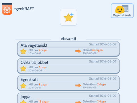 EgenKRAFT är ett planeringsverktyg framtaget av forskare vid Högskolan i Skövde och IUS Innovation för att stödja lärandet i att leva med långvariga hälsoproblem. Appen är ett verktyg för sätta upp mål och delmål, att reflektera över: var du är nu, vad som lett dig dit och hur du ska ta dig dit du vill. EgenKRAFT är ett aktivt redskap för att hjälpa dig att nå dina mål.
