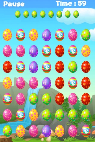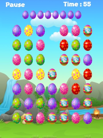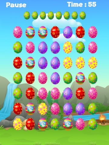 Tap the eggs having the same color as blinking eggs, try to clear the board as soon as possible by tapping correct eggs. Tapping the correct type will remove eggs while wrong color tapping will add the penalty to total time. The faster you tap correct eggs, the less time it will take to clear the board, thus the higher rank you will get.