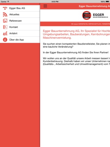 • Diese App benötigt eine aktive Internetverbindung zur Verwendung der integrierten Karte. Ebenso wenn Sie ein Feedback Email schreiben oder zur Website navigieren möchten. Möchten Sie eine Wegbeschreibung von Ihrer aktuellen Position zur Egger Bauunternehmung AG, wird ein aktiver Ortungsdienst vorausgesetzt. Bei der Verwendung der Mobilfunk Funktionen (Internet, Telefon, SMS, ...) des Geräts, können unter Umständen individuelle Kosten anfallen. von dieser App weder benötigt noch gesammelt.