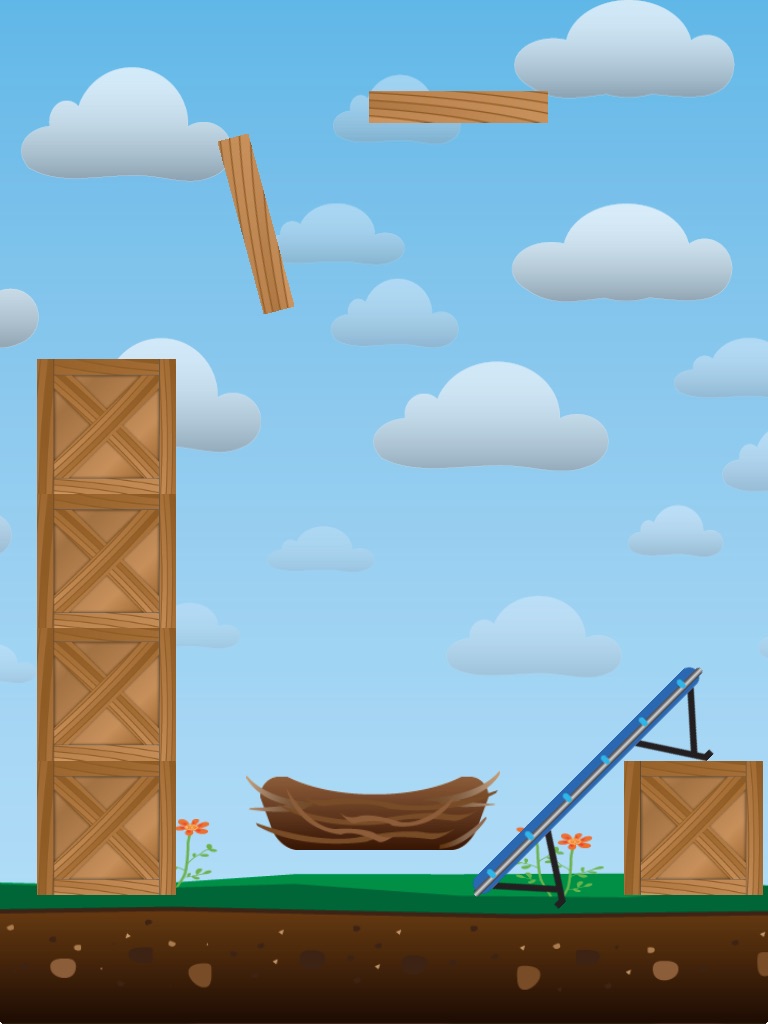 One stormy night a wild and turbulent wind blew the egg out of its nest. In order for the egg to hatch and grow into a bird, it needs your help to put it back in its nest. Just touch the Levels button to begin. Press and hold on the egg and drag back to control power and angle to launch it back into the nest. As the levels progress you will have obstacles that you will have to overcome in order to get the egg back in the nest.