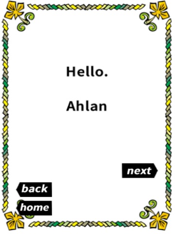 All topics are accessible from the main menu. There are also "next", "back" and "home" buttons to assist users to navigate between terms and phrases.