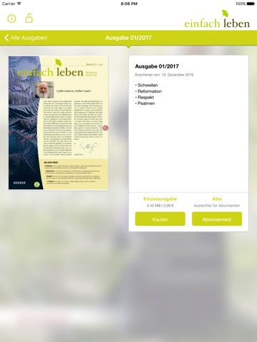 As an annual subscription you get two free issues on your tablet / smartphone. Further information about the subscription can be found here: abo.einfachlebenbrief.de