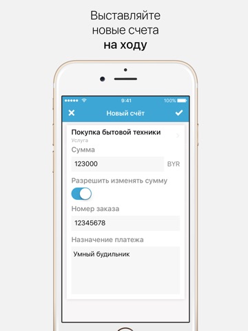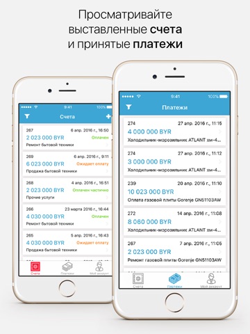 С помощью мобильного приложения Вы сможете получать мгновенные уведомления о принятых платежах, выставлять новые счета, просматривать существующие счета и принятые платежи.
