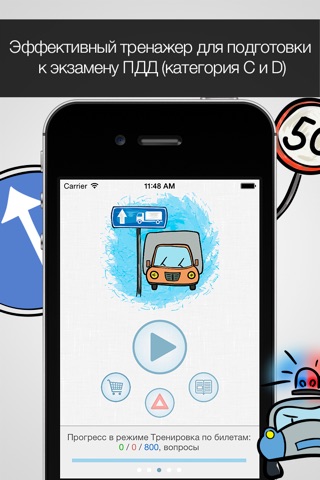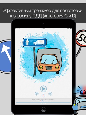 Вы имеете замечательную возможность эффективно подготовиться к теоретическому экзамену в ГИБДД на знание действующих правил дорожного движения (ПДД) по категориям C и D. Наше универсальное приложение для iPad и iPhone позволит самостоятельно подготовиться новичку к экзамену, а водителю со стажем - освежить знания ПДД.