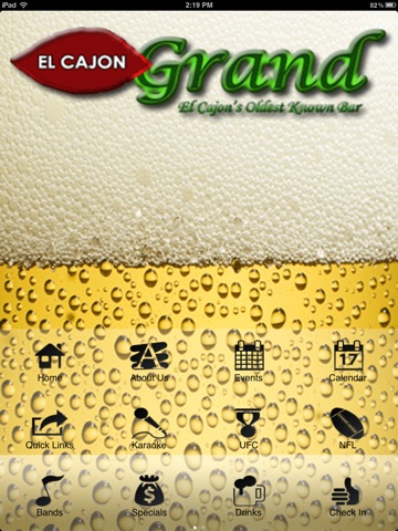 The official app of The El Cajon Grand! The “oldest known bar” in El Cajon, California Now you can view our calendar of events, stay up to date with all of their UFC Fights, football games, and Live Entertainment. Access app only specials, and be able to check in when you arrive to receive even more benefits! The El Cajon Grand offers 9 HD wide screen TV’s, a pool table, and a large patio with horseshoe pits. Every seat in the house is a good seat. We are the first establishment in East County with a shuttle service that will transport their patrons home free of charge. Download our app and visit us tonight.