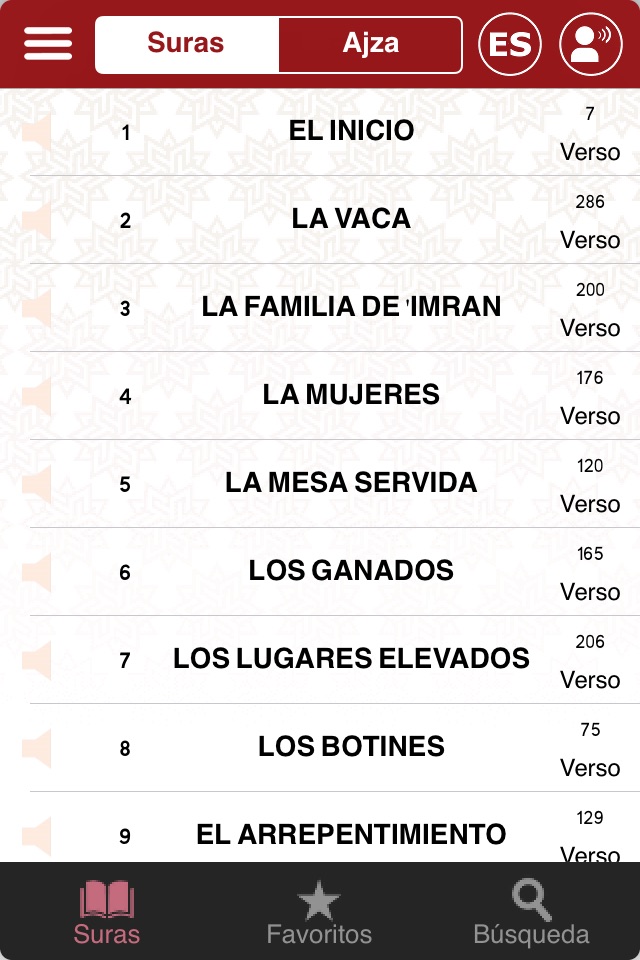 1. La aplicación cuenta con una interfaz que permite al usuario explorar el contenido en árabe y en español o en cada idioma por separado.