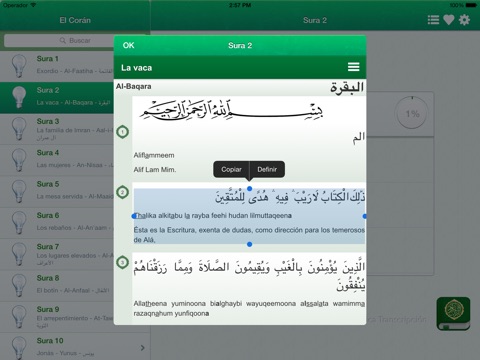 - Automático Bookmark para cada sura tanto en texto