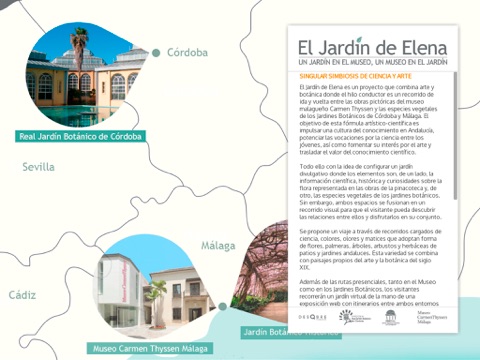Un museo en el jardín, un jardín en el museo. Visita virtual a una selección de 18 obras pictóricas del Museo Carmen Thyssen de Málaga en la que se analizan los elementos botánicos que están presentes en ellas, vinculándolos a espacios de los jardines botánicos de Málaga y Córdoba. Una forma diferente de comprender y disfrutar del arte y de la ciencia.