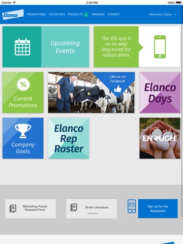 Elancos Channel and Distribution mobile app provides comprehensive, real-time information to Elanco distributor reps on promotions, incentives, products, and trainings.