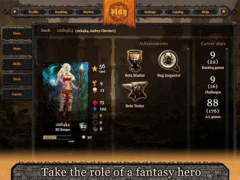 + Be a HERO (or a team of heroes) - as in all rpgs rise levels, distribute stat points, train skills and as in all ccgs collect cards and create decks.