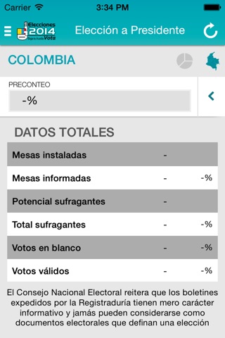Esta aplicación permite a los ciudadanos consultar los resultados preliminares de las Elecciones de Presidente y Vicepresidente el 25 de Mayo de 2014.