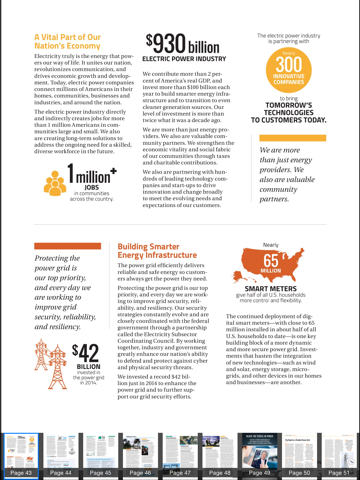 ELECTRIC PERSPECTIVES is the magazine for executives and managers in shareholder-owned electric utilities. Published by Edison Electric Institute, EP offers insight into the legislative, regulatory, environmental, technological, financial, operational, and economic issues affecting the power industry today. Executives and managers rely on EP to identify and analyze trends and ideas that will have an impact on electric utilities in the future. The magazine’s engaging style and wide-ranging editorial—in feature articles, interviews, opinion, and shorter trends pieces—make it necessary (and interesting) reading for the intelligent utility businessperson.