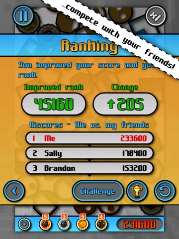• Watch your Game Center ranking and improvement after each game.
