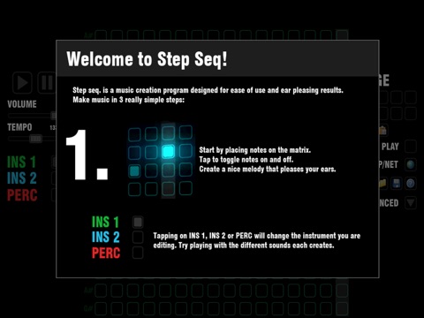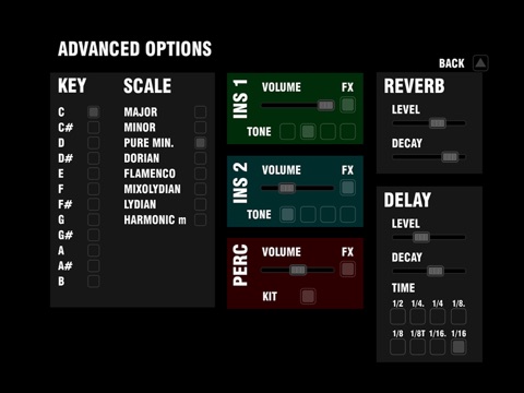 Choose a variety of tools (INS) and percussion (PERC) on the right side. Additional options, where FX / Key / Scale and tone can be changed. Just play with it and you will see that it is very easy to use, once you learn how to use it.