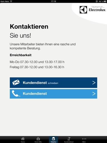 Schnell und unkompliziert finden Sie hier erste Hilfe für alle Electrolux, AEG und Zanussi Haushaltgeräte. Egal ob Sie den Kundendienst oder die Helpline kontaktieren, technische Auskünfte oder sogar Ersatzteile bestellen wollen: Typenschild Ihres Gerätes fotografieren und los geht’s. Weitere Funktionen: Kundendienstadressen, Geräte-Registrierung, ET-Webshop, Prospektebestellung, usw.