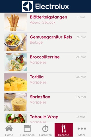 In der Funktion "Garzeiten" finden Sie zudem eine ausführliche Liste von Lebensmitteln und die entsprechende Dauer der Garzeit. So wissen Sie immer auf die Schnelle, wie Sie Ihre Speisen zubereiten sollten.