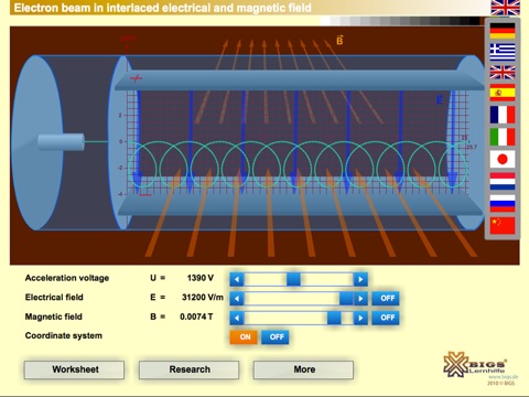 - and to determine the specific charge (q/m) of an electron (i.e. the measured values shown in the app correspond to those of the real experiment),
