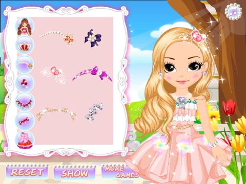 Now, your task is to turn the girl into a elegant and charming princess! So, get ready for a super real makeover. Using facial mask clean up and freshen up her face, once her skin looks flawless you can move on to the makeup stage. Choose a great combination with blush, eye shadow and a cute peachy lipstick, etc. At last, choose an elegant hairstyle, a beautiful princess dress and appropriate accessories. Oh, she looks absolutely stunning!