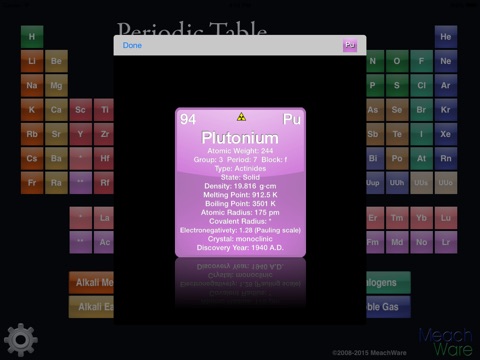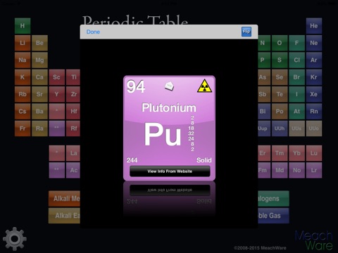 Elemental PToE - The Periodic Table of Elements, in your pocket. Featuring a built-in web browser and 24 data points per element. Select from one of five web sites to use. Customizable Tabs so you can configure it to meet your needs. Fast and responsive full table view. Included quick start guide ("i").