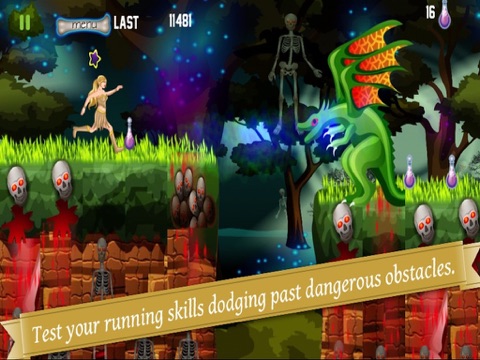Test your gaming skills to help Arla run, jump and dodge heart-stopping obstacles in this new and exciting HD fantasy running game. Collect the potent elf magic bottles required to reverse the evil dark magic that enslaved our hero, Arla, and her elf clan. Compete with yourself or your friends with multiplayer tournaments. It wont be easy. Eckra The Cruel, dark Wizard Lord of Sarvonia, has unleashed savage Smolter the dragon and his undead skeleton army of goblin soldiers to defeat her in this fun, fast paced adventure. Are you up to the challenge?