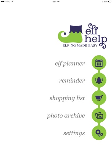 elf help is a daily planner, shopping list, reminder, and photo sharing tool that gives parents and their children the gift of the most magical season yet from the wildly popular Christmas elf. There are so many fun and creative elf ideas to be found online. This app is the answer to simplifying and organizing your favorite elf ideas into one place. Designed by parents for parents, your own personal elf help calendar allows you to upload photos and/or descriptions of your favorite elf ideas and to enter necessary supplies that are automatically added to an easy check-off shopping list. In addition to simplifying the elfing tradition for parents during what is already a hectic time of year, elf help also features an important custom message reminder tool so parents don’t forget about the elf’s nightly return to and from the North Pole! A photo tool is also available through the elf help app so users can take photos of their elf each day to archive and share online via multiple social media channels. elf help also features a secret parent pin code to access the app so your elf’s magic is always protected from young eyes.
