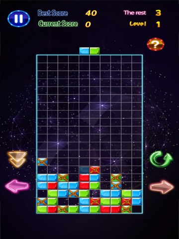 - drop mode: by GongGe four key control the whereabouts of the square, to make it to change shape to fit other squares, to achieve the entire line to eliminate. Eliminate the more the number of lines at the same time, the higher the score;