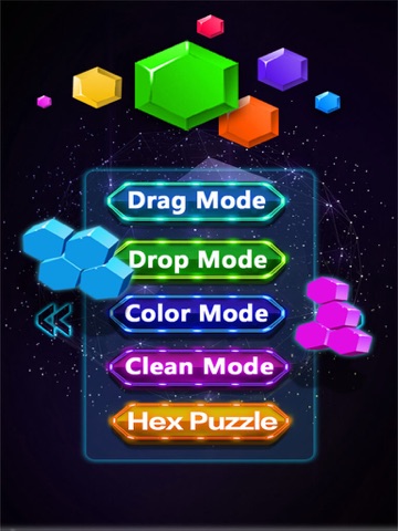 - hexagon mode: drag the random hexagon combination in large hexagonal space, create and remove the complete one or more lines of line, and eliminated by combo to get higher scores. If the board can no longer be put under any combination of a hexagon, the game ends;