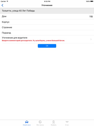Приложение работает быстро, заказ такси оформляется в несколько кликов.