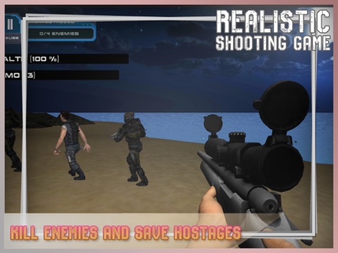 Kill all enemies now. Rivals have occupied the island. You need to evacuate the place as early as you can. Some of our elite commandos are in their custody. Make sure you do not shot any of our hostages. As always, here you have another chance to prove you sniper shooting skills. Keep hunting enemies till you not destroy all of them.